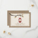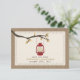 Un mariage d'automne en plein air sauvez la date avec un thème sauvage / camping avec une illustration d'une lampe à huile rouge accrochée à une branche d'arbre avec des feuilles orange et marron. Arrière - plan à l'avant et à l'arrière est inspiré burlap.