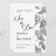 This beautiful floral Save the Date card features a verse from the Song of Solomon: "I have found the one whom my soul loves." The front displays elegant black-and-white floral designs alongside beautiful calligraphy. On the back, there is a photo of the couple. To customize your card, simply click "Personalize This Design," upload your photo, and enter your details. Zazzle will handle the rest.
