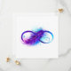 Infinity symbole with a beautiful feather painted in purple and blue bright colors on white background