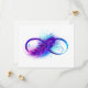 Infinity symbole with a beautiful feather painted in purple and blue bright colors on white background
