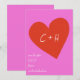 Annoncez votre jour spécial avec cette carte "Save the Date" aux initiales en forme de cœur gras, mettant en vedette un cœur rouge vibrant sur un fond rose vif, personnalisée avec vos initiales. Avec une typographie moderne et ludique, cette carte donne le ton pour une célébration amusante et romantique. Incluez votre date de mariage, votre lieu et votre site web pour tenir vos invités informés et excités. Parfaite pour les couples qui aiment les designs audacieux et colorés, cette carte est une façon unique de partager votre histoire d'amour et de vous assurer que tout le monde sauvegarde la date !