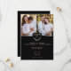 Initiales Élégant Fleurs Rose Cœur 2 Photos sur Fond Noir Faire-Part de Save the Date avec Enveloppe.