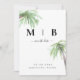 Des palmiers tropicaux simples. Initiales noires. Save the date. Mariage. Lave-toi. Faire-part. Vertical.