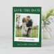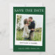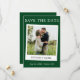 Moderne Simple Rétro Instantané Style Caméra Couple Photo Enregistrer La Date Photo Fiançailles Carte Faire-part - Forest Green