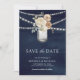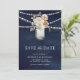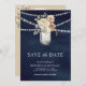Save The Date Ivory Floral Mason Jar Photo Marine Blue Mariage