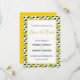 Élégante invitation SAVE THE DATE avec le contour de la carte du drapeau de la JAMAÏQUE en motif de carrelage et une garniture en faux or. Le message des Écritures dit "Et les deux deviendront un". Le design peut être entièrement personnalisé avec votre propre message et pour vos célébrations spéciales, par exemple les anniversaires, les jours de l'indépendance, les jours du patrimoine, les réunions de famille, etc. La ligne pointillée est pour que vous ajoutiez le(s) nom(s) de votre(vos) invité(s). La papeterie assortie est disponible. Une merveilleuse façon de célébrer votre foi et votre drapeau lors de votre jour spécial.