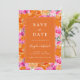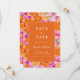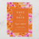 Annoncez votre grande journée avec ce jardin d'été animé rose et orange mariage enregistrer la date, disponible en tant qu'invitation de carte imprimé et un téléchargement numérique instantané. Avec ses motifs floraux d'aquarelle audacieux dans les tons rose et orange vif, il est parfait pour les couples à la recherche d'une ambiance amusante, branchée et intense. Avec son thème botanique de printemps coloré, cette unique sauvegarde la date est une façon joyeuse de donner le ton pour votre grand jour. Parfait pour un rose et orange, sauvez la fête de la date !