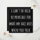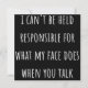 je ne peux pas être tenu pour responsable de ce que fait mon visage quand vous parlez