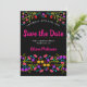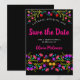 Enregistrez la carte d'annonce de date que vous pouvez customiser pour convenir à toute occasion. Le design floral regorge de jolies fleurs mexicaines de Fiesta à l'avant, avec une typographie douce en rose et un arrière - plan noir. Le modèle est mis en place pour que vous personnalisiez la carte postale avec votre date spéciale, votre occasion et votre nom. Fille, coloré et parfait pour coordonner avec les fêtes mexicaines, anniversaires et nos collections Quinceanera.