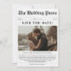 Extra ! Extra ! Vous allez vous marier ! Ce faire-part de mariage de style journalistique rend votre grande nouvelle officielle. Avec une mise en page noir et blanc, une photo de la Tour Eiffel et une présentation classique, c'est idéal pour les couples qui veulent quelque chose d'amusant, romantique et unique sans dépenser une fortune.