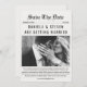 Vous cherchez une façon unique et élégante d'annoncer votre prochain mariage? Cette carte de style journal "Save the Date" est la meilleure façon d'annoncer votre journée spéciale à vos proches! Avec une fente photo personnalisable, cette carte vous permet d'ajouter votre touche personnelle à votre faire-part. Le design des journaux ajoute une touche de sophistication et de classe à votre message.