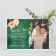 Cette collection présente un arrière - plan vert émeraude moody avec une typographie branchée et des accents floraux. Personnalisez facilement le design avec votre libellé pour les faire enregistrer les cartes de date totalement unique à votre journée spéciale.