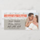 Ce mariage classique, sauf la carte datation, présente un arrière - plan gris et des images de ruban de couleur corail recouvert de dentelle-look. Parfait pour un mariage d'inspiration rustique ou vintage. Ajoutez votre propre photo pour customiser. Contactez-nous pour des couleurs personnalisées sans frais supplémentaires.