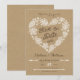 Élégant mais décontracté, cette carte d'enregistrement de date est parfaite pour tout amoureux de la nature. Des feuilles en dentelle stylisées, des pommes de pin, des glands, des flèches et des fleurs forment un cœur avec un fond en papier kraft rustique. Personnalisez avec votre propre texte. Illustration originale de pj_design. Veuillez vérifier ma boutique pour en voir d'autres similaires.