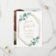 Cette carte à plat de remise mariage botanique présente un design botanique d'un cadre géométrique en faux or accentué de la verdure d'eucalyptus aquarelle peinte à la main avec les mots "L'amour est patient" dans le script en faux or écrit à la main avec votre message reporté ci-dessous pour vous de personnaliser.Le dos de la carte a une photo pour vous de customiser avec votre propre. Meilleurs voeux pour votre futur mariage ! Conçu par Susan Coffey.