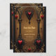 L'amour éternel dans l'ombre de l'obscurité gothique. Le cadre orné, inspiré de l'architecture gothique, se compose de deux colonnes noires majestueuses ornées de délicats accents dorés. Ces colonnes encadrent une grande ouverture voûtée qui brille contre un arrière - plan brun chaleureux, offrant un parfait contraste avec les éléments sombres. Les coeurs rouges délicats sont partiellement enveloppés dans des toiles fines.