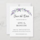 Un design élégant et vintage avec des roses violets, des eucalyptus et de la lavande peints en aquarelle romantique.