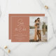 céramique en terre cuite style typographie blanche avec lettrage moderne et élégant. Notre magnifique mariage personnalisé enregistrer les cartes de date dispose d'un design étonnant qui complète n'importe quel thème mariage. L'avant de la carte comporte un texte personnalisé ainsi qu'une belle image.