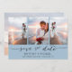 Choisissez les meilleures photos de votre séance photo fiançailles ou vos photos préférées de vous deux pour cette parfaite enregistrer la date. Les mots sauvegardent la date sont écrits à la main pour donner une impression personnelle à la carte. L'avant a 3 images et l'arrière a une grande image avec un filtre blanc sur le dessus.