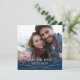 Cette carte d'annonce de mariage en forme de carré comporte un cadre photo qui remplit toute la face avant de la carte. Un dégradé de bleu marine et des lignes dorées simples accentuent le bas de la photo. Un texte personnalisé vous permet d'ajouter les noms des mariés et leur date et lieu de mariage à venir.