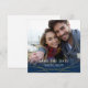 Cette carte d'annonce de mariage à enregistrer la date comporte un cadre photo qui remplit toute la face avant de la carte. Un dégradé de bleu marine et des lignes dorées simples accentuent le bas de la photo. Un texte personnalisable vous permet d'ajouter les noms des mariés ainsi que la date et le lieu de leur mariage à venir.