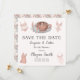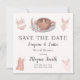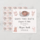 Cette charmante carte de Save the Date donne le ton pour un shower de lingerie et de lattés, avec de la lingerie de mariage élégante, un latte cosy et des fleurs bohèmes dans un design stylé. Le dos présente un motif fantaisiste de gâteaux de mariage, de pièces de lingerie délicates, de fleurs et plus encore.