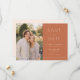 This elegant save the date design features a warm, inviting color palette with soft peach tones that create a romantic and sophisticated atmosphere. The layout is split into two sections, combining a beautiful photo area on one side with clean, modern typography on the other, ensuring both visual appeal and readability. Perfect for couples looking to announce their wedding in style, this design exudes charm and grace, making it an ideal choice for a memorable celebration. Customizable text areas allow you to personalize your message while maintaining the overall aesthetic.