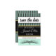 Élégants et stylés, ces cartons de Save the Date présentent des rayures audacieuses, une volute de lotus et une feuille d'or simulée. Le verso est rayé et dispose d'un espace pour des informations supplémentaires, comme un lieu et un site web. Il y a suffisamment d'espace pour ajouter des photos pour personnaliser davantage. Il existe de nombreuses tailles de cartes, formes et types de papier parmi lesquels choisir.