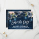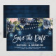 Modèle de carte d'invitation "save the date" avec un design floral chic et champêtre à l'aquarelle dans les tons bleu marine, rose blush, avec guirlande lumineuse et pots Mason sur fond en bois, accompagné de feuillage botanique vert sauge et feuilles d'eucalyptus. Ce magnifique design facile à personnaliser peut s'adapter facilement à vos couleurs, styles et thème de mariage et est un choix parfait pour les mariages rustiques champêtres d'automne, de milieu d'été ou d'hiver. Vous pouvez trouver plus de modèles assortis dans ma boutique ou me contacter si vous avez besoin d'aide pour la personnalisation du design.