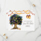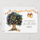Une illustration merveilleuse et vibrante représentant un grand chêne rempli de lanternes suspendues factices brillantes et de guirlandes lumineuses sur fond blanc. Celles-ci sont idéales pour les faire-part de "save the date" rustiques de campagne pour l'automne, l'été, le printemps ou l'hiver. Ces cartes plates luxueuses et élégantes raviront vos invités.