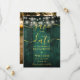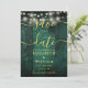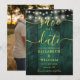 Cette élégante carte de rappel de mariage champêtre avec des lumières de chaîne de couleur vert émeraude sur bois rustique peut être personnalisée avec vos informations en typographie dorée chic et une photo spéciale au verso. Conçue par Thisisnotme©