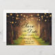 Carte d'annonce de fiançailles et de mariage avec lumières de chemin de forêt rustique