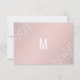 Elégant, chic, et glamour lumières en diamant suspendu blanc sur rose vif, carte de mariage Save the Date. Ce design classique et sophistiqué est parfait pour le couple marié branché et élégant. Personnalisez avec votre propre message sur l'avant ainsi qu'avec un premier monogramme customisé sur l'arrière. Toute la conception d'impression photo.