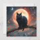 Sur Une Branche D'Arbre Gnarly En Face D'Une Pleine lune Avec Des Chauves Volantes Dans L'Arrière - plan Est Un Chat Noir Aux Yeux Oranges.
