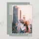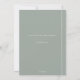 Carte de faire-part de mariage à photo avec écriture blanche et verte Sauge. Impressionnez élégamment vos invités avec cette carte de faire-part de mariage photo élégante et simple, de couleur verte mousse, avec une écriture blanche moderne sur un fond vert sauge bokhe, présentant de manière élégante la date du mariage à l'horizontale le long de la gauche, ainsi qu'une photo personnalisée du couple à marier, avec un élément de ligne argentée simple sur le côté droit. Puis un dos de carte vert mousse minimal et uni, avec simplement les noms et le lieu du couple à marier dans une police blanche élégante. Cette carte de faire-part de mariage minimal donne une atmosphère élégante et moderne à votre mariage vert sauge.