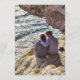 On the back, there is another placeholder photo a couple siting on the beach, looking at the sea, seen from behind.