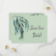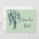 Jolie Branche de Saule Vert Sauge Botanique Faire-Part de Mariage à Enregistrer | Il s'agit d'un joli modèle de faire-part de mariage botanique de style minimaliste qui présente une branche de saule bleu-vert sur un fond vert sauge avec les mots Enregistrez Notre Date en écriture manuscrite sur le devant. Le dos a le motif inversé et les noms des heureux couples avec la date du mariage et un espace pour une courte note en dessous dans des polices contrastées. Tous les champs de texte sont des modèles afin que vous puissiez facilement les personnaliser. #enregistrerdatel #rappel