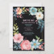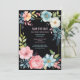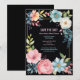 Cartes de mariage vintage florales aquarelle avec le design de fleurs enroulées autour d'un cadre, avec des couleurs rose, bleu, vert et un fond noir. Très joli et mignon.