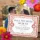 Ce beau mariage en papel picado inspiré, sauf la date design dispose d'un cadre rouge chaud orné, texte gris foncé, arrière - plan blanc, et typographie moderne. Ce design élégant et moderne est un choix fabuleux pour un mariage latino ou un mariage de destination mexicaine. Sur le dos se trouve votre propre photo horizontale "plein sang", qui peut être enlevée si désiré.