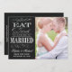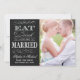 Élégant facile à utiliser "Save the Date" modèle photo avec les mots "Eat Drink and Be Married". Tableau noir et typographie vintage.