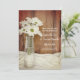 Annoncez votre prochaine cérémonie décontractée de mariage agricole avec les charmantes pâtisseries blanches dans le Mariage campagnard de bouteille de lait Enregistrer la date Annonces. Ces mariage de style ranch chic rustique et chic conservent les dattes avec une photo florale pittoresque de fleurs marguerites blanches dans une bouteille de lait en verre vintage avec satin blanc et un arrière - plan en bois de grange brun. Idéal pour une visite ou une idée pour votre cérémonie informelle de mariage à la grange et le thème de la réception. Disponible sous forme d'invitation imprimée à l'envoi ou en téléchargement numérique pour un partage numériquement en ligne facile.