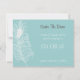 Ceci enregistre les coordonnées de la carte de date avec le Faire-part de mariage de plume et dispose d'un seul ensemble de plumes de paon blanc sur un arrière - plan bleu. Choisissez parmi près de 200 couleurs pour customiser cette rsvp aux couleurs de votre mariage!