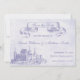 Mariage Fairytale enregistrer les cartes de date avec un conte château et une bannière sur un arrière - plan parchemin vintage. Parfait pour votre mariage princesse de conte de fées ! Belle image violette et texte sur un arrière - plan lilas antique. Aussi disponible dans d'autres jeux de couleurs. Veuillez contacter pmcustomweddings@hotmail.com pour obtenir des couleurs personnalisées.