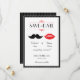 Des lèvres rouges pulpeuses et une moustache élégante sont les attractions principales de ce faire-part de mariage élégant et moderne.
