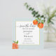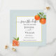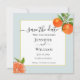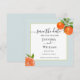 Élégante carte de Save the date avec une illustration d'orange à l'aquarelle dans une bordure aqua pâle. Parfait pour les mariages d'été.