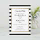 Avec un fond à rayures noires et blanches classique, cette élégante carte de rendez-vous de mariage comporte une bordure en faux or élégante encadrant vos détails de rendez-vous de mariage dans une typographie chic. Conçue par Thisisnotme©
