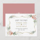Carte élégante avec un design floral aquarelle comprenant une verdure aérienne, des fleurs roses poudrées et blanches, un cadre doré faux, sur fond blanc. Au dos, des fleurs, un nom et une date sur fond rose poudré. Utilisez l'outil 'Personnaliser' pour ajouter vos informations. Pour les articles assortis, veuillez visiter ma collection 'Fleurs rose poudré'.