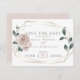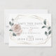 "Save the date" pour mariage | Boho chic rose rose aquarelle roses entourent un cadre d'or de style terrarium géométrique avec de la végétation sauge. Reverse est un rose roux poussiéreux gratuit. Personnaliser texte, style de police, couleur et taille. OEuvre originale créée pour BarefootBride™ par © WhimsicalArtwork™ - Il s'agit d'une suite de papier à lettres Mariage complète avec papier à lettres mariage, baby shower et autres articles de papeterie d'événements correspondants.
