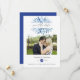 Mariage bleu marine et blanc avec feuillage, carte de sauvegarde de date conçue pour être rapidement et facilement personnalisée selon les spécificités de votre événement.