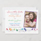 Le texte et la photo mariage sur cette photo florale amusante, capricieuse et unique des oiseaux de couleur arc-en-ciel (oiseaux chanteurs, tourterelles), fleur et feuilles (vignes) photo mariage enregistrer la date invitation est entièrement personnalisable. Un grand choix pour ceux qui ont une mariage à thème arc-en-ciel. Pour modifier le texte et la photo, utilisez l'option personnaliser. Pour des modifications plus étendues du texte ou de la photo, y compris des modifications de la police, de la couleur de police, de la taille de la police, de la taille de la photo, de l'emplacement de la photo ou du texte, utilisez l'option customiser. Vous pouvez également essayer sur différents types de papier. Vous pouvez utiliser ce mariage arc-en-ciel couleur enregistrer la carte de date pour toute autre occasion spéciale ainsi que des modifications au texte. Il ferait une belle invitation photo pour une variété d'occasions spéciales.